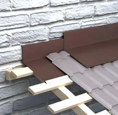 • Пример: если крыша примыкает к кирпичной стене, стоит выбрать планку примыкания с более широким заходом на вертикальную поверхность