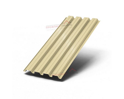Здесь применяется полимерное покрытие на основе полиэстера, нанесённое на стальной прокат перед профилированием. В маркировке указан оттенок RAL1014, что важно при согласовании с фасадной или кровельной палитрой. Благодаря этому лист получает одновременно защиту поверхности и готовый внешний тон без дополнительной окраски на объекте.