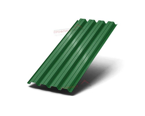 Основу изделия составляет профилированная сталь 0.5 мм, а внешний слой описывается как полимерное покрытие на основе полиэстера. В маркировке указан оттенок RAL6002, что важно при согласовании с фасадной или кровельной палитрой. Для кровельной схемы это означает, что лист работает не только на отвод воды, но и на восприятие продольной нагрузки между опорами.