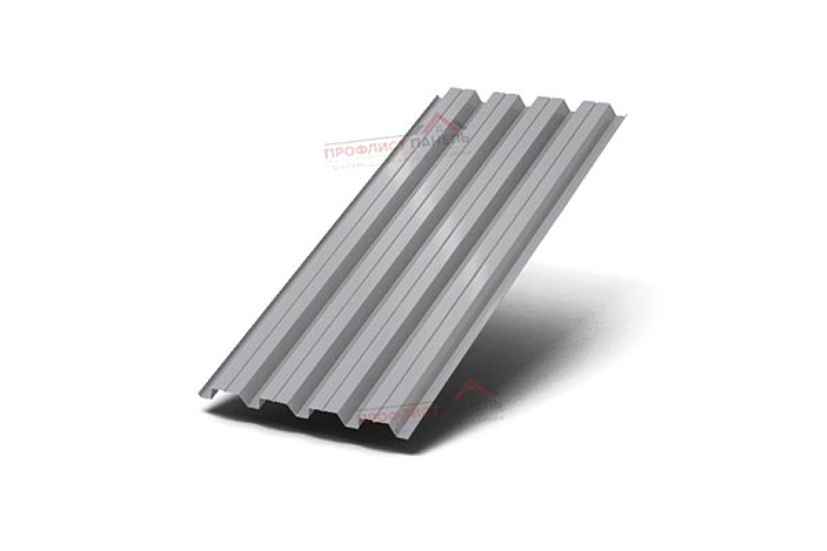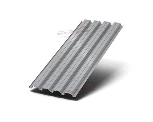 Лист имеет трапециевидную геометрию и защитную систему полимерное покрытие на основе полиэстера. В маркировке указан оттенок RAL7004, что важно при согласовании с фасадной или кровельной палитрой. Такой набор параметров учитывают при оценке коррозионной стойкости, температурной подвижности и совместимости с доборными элементами.