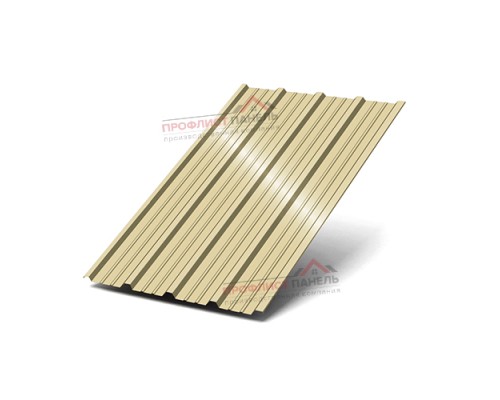 Позиция «Профнастил НС38х1000-0.7 Полиэстер RAL1014» относится к профнастилу НС38: лист имеет ширину 1000 мм, стальную основу 0,7 мм и наружный слой Полиэстер. По обозначению профиля видно, что высота гофры составляет 38 мм, а цвет задан по шкале RAL1014, что позволяет увязать лист с доборными элементами и фасадными узлами по общему коду