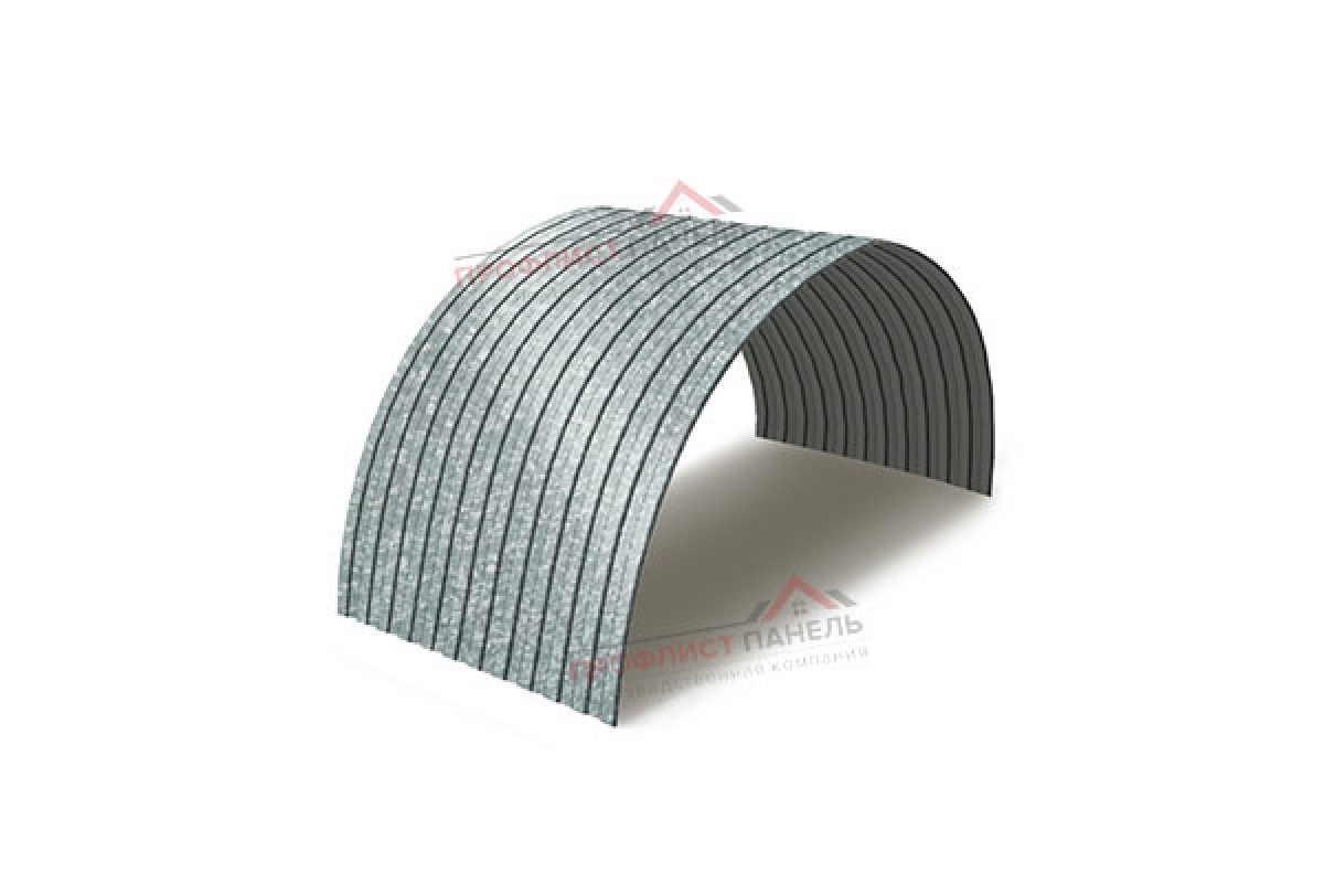Материал рассчитан на применение в арочных системах и подбирается по сочетанию профиля СС10ПГ, ширины 1160 мм и металла 0.4 мм. Для этого исполнения также учитывают покрытие Оцинкованный.