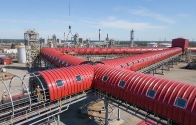 - Конвейеры в энергетических и металлургических комплексах часто подвергаются воздействию высоких температур, пыли и других агрессивных факторов. Укрытия из арочного профнастила Н57ПГ защищают конвейерные системы от внешней среды и способствуют более эффективной работе оборудования.