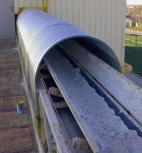 Используются для защиты конвейеров, перемещающих зерно, комбикорма и удобрения. Укрытия предотвращают намокание продукции и образование плесени, сохраняя качество и массу материала при транспортировке.